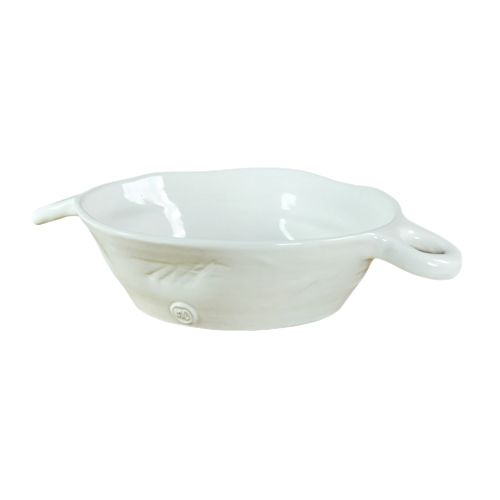 Our Montes Doggett ceramic baker with handles is high fired and dishwasher, microwave and oven safe. Hand Made in Peru. Each handcrafted piece is chosen for its versatility, simplicity and functionality. The traditional shapes of the tabletop are interpreted in news ways, creating endless possibilities and combinations. Artisans fine-tune, transform and inspire the pieces without assembly-line machinery.Dimensions: 9.5" D 3.5" H Large Dimensions: 8.5" D 2.75" H Small