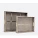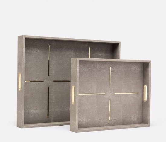 Delanea faux shagreen tray with linear insert brass design. Dimensions Small 19"L x 14"W x 2.5H" Large 24"L x 18"W x 2.5"H